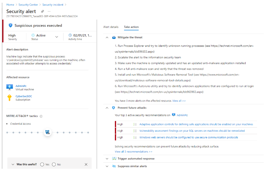 Similar to Azure Monitor there is the facility to work to the same pattern Monitor, Remediate and Alert and again with Logic App Playbooks